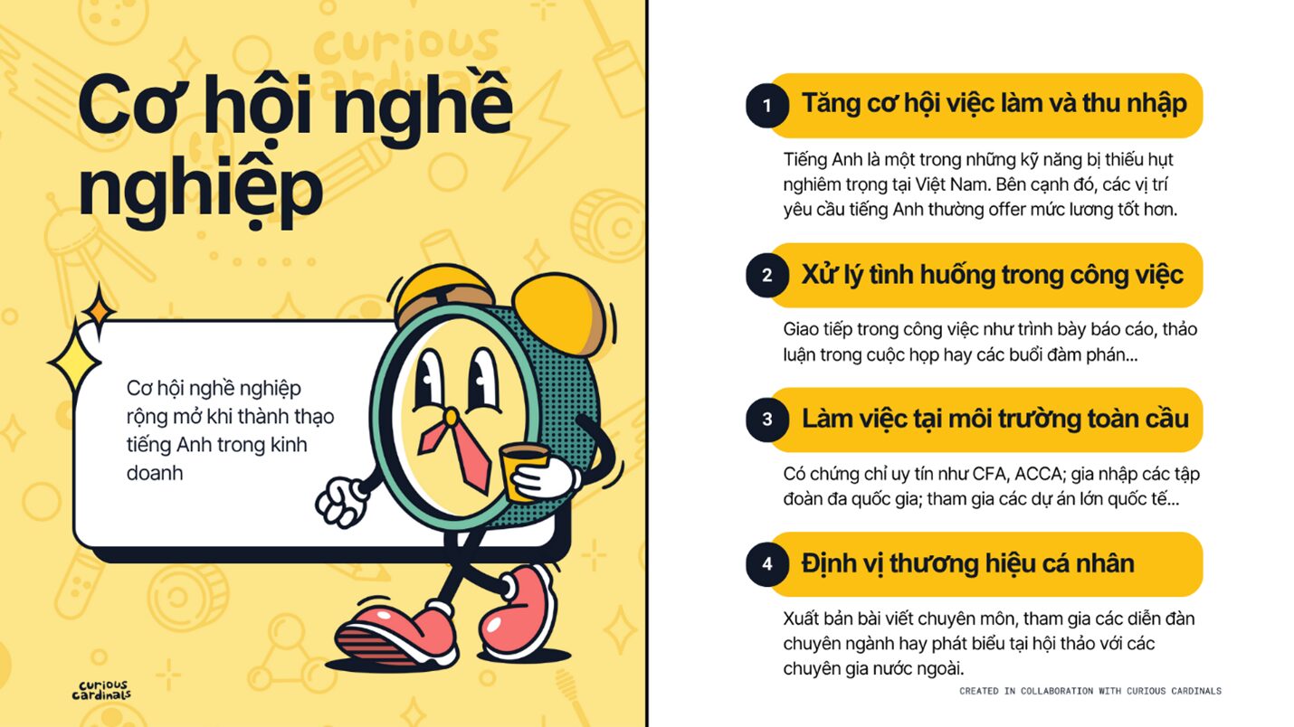 Đầu tư cho Business English chính là đầu tư cho một sự nghiệp linh hoạt, vững vàng và không giới hạn biên giới.