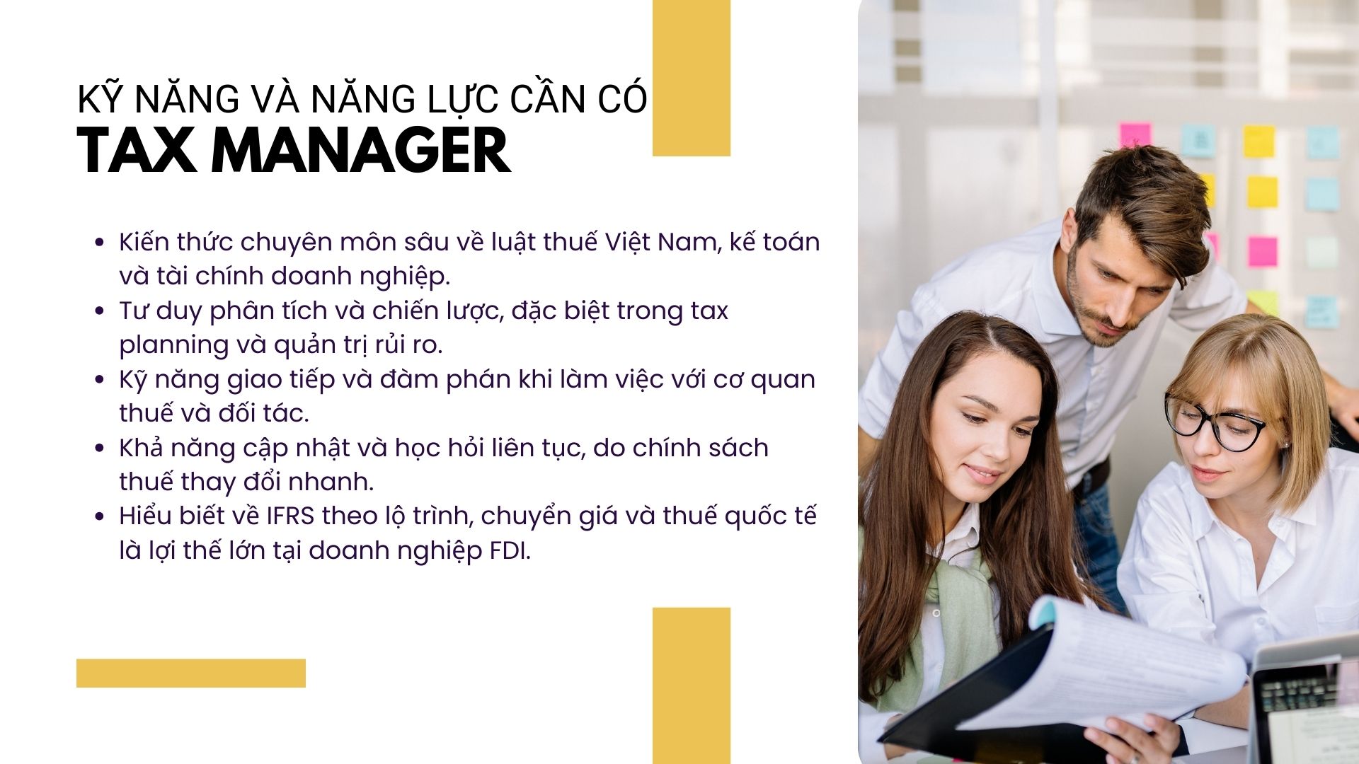 Để đảm nhiệm tốt vai trò này, Tax Manager cần hội tụ nhiều nhóm kỹ năng: