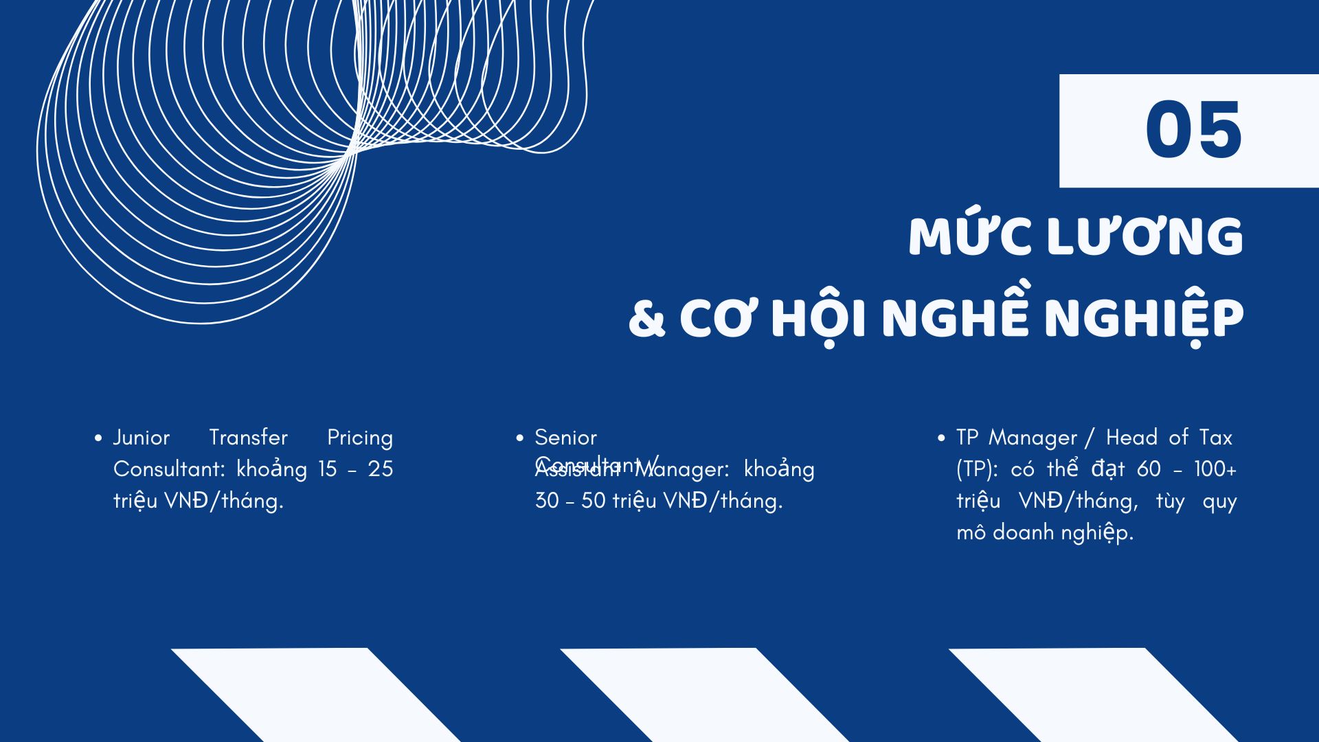 Transfer Pricing Consultant → TP Manager → Tax Manager → Head of Tax / CFO (định hướng thuế – tài chính).