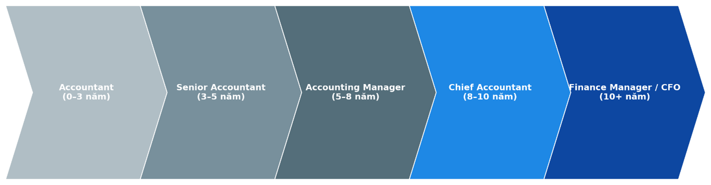 Để đến được vị trí Accounting Manager (Trưởng phòng Kế toán), thường sẽ đi theo một lộ trình nghề nghiệp tuần tự từ nền tảng chuyên môn đến quản lý.